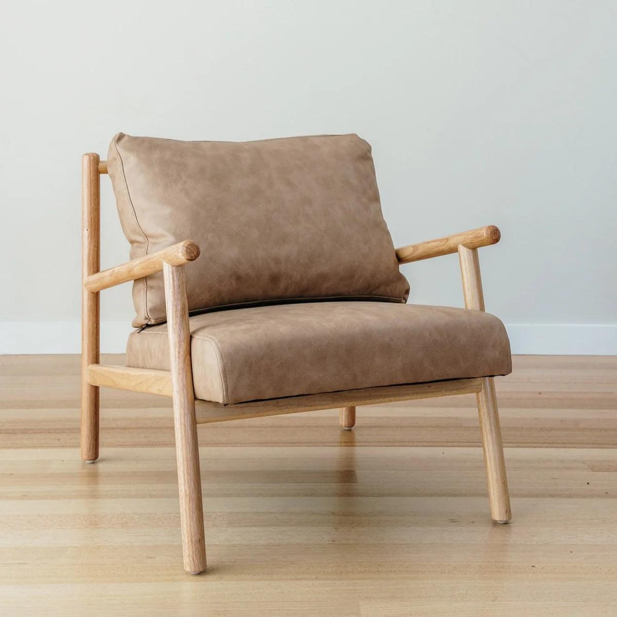 Dallas Vegan Leather Wooden Armchair